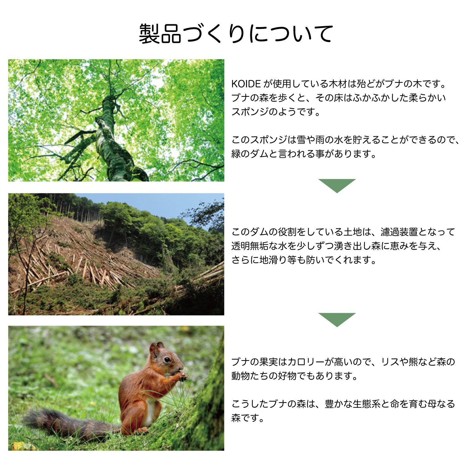 木肌が緻密でささくれが出にくい天然素材を使用し、栃木の職人さんが1つ1つ丁寧に作り上げている日本製。
