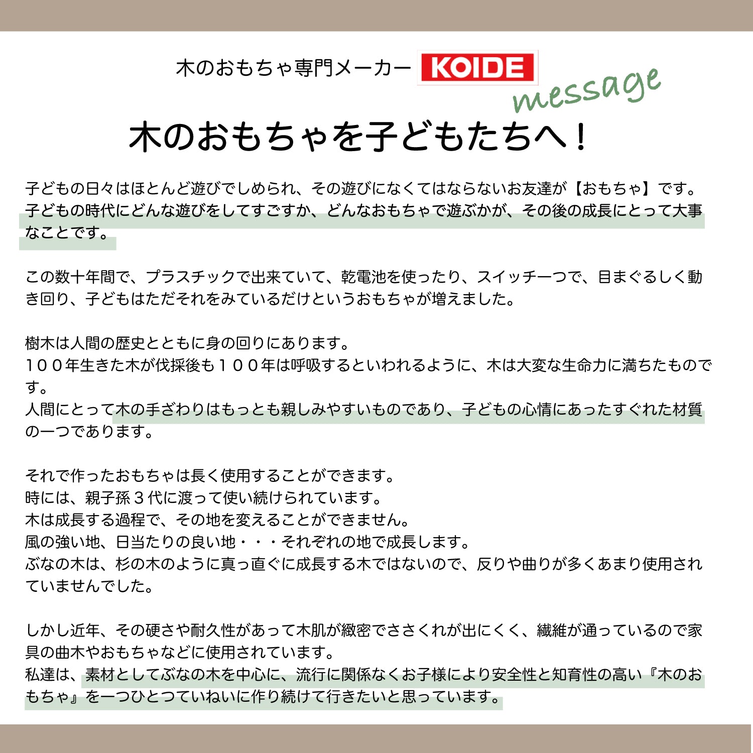 ▶木のおもちゃ専門メーカーKOIDE メッセージ
