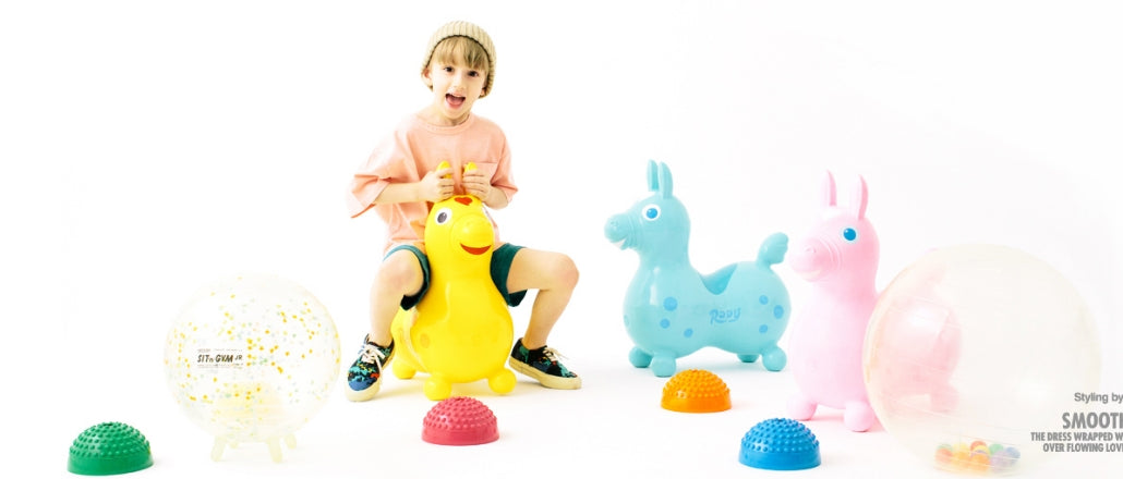 体幹を育てます!イタリアのバランスボール工場で馬をモチーフにして作られたロディは、バランスボールテクノロジーを応用してロディの全体が丸いフォルムの集合体で作られています。