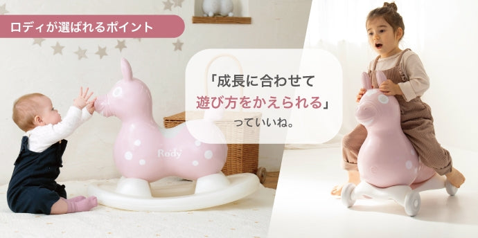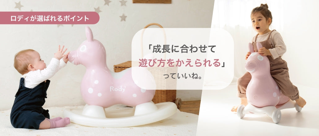 子供たちはロディに乗り、楽しく遊ぶことで、早期の段階から平衡感覚、力の調整、正しい姿勢など、