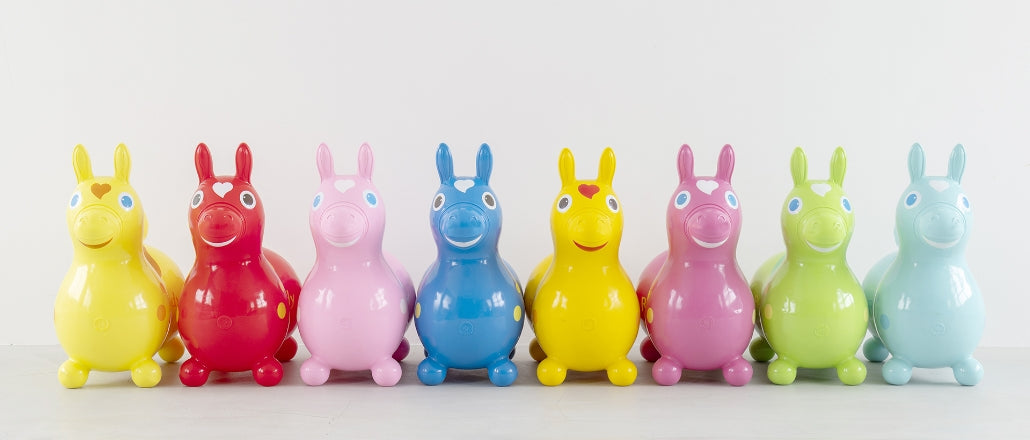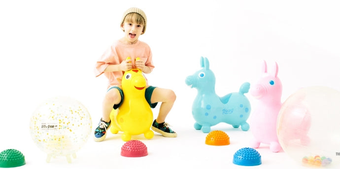 馬をモチーフに、バランスボールテクノロジーを応用して作られた乗用玩具です。
