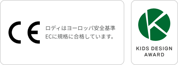 ■ロディはヨーロッパ発のおもちゃの安全基準を示す「CE マーク」を取得しております。