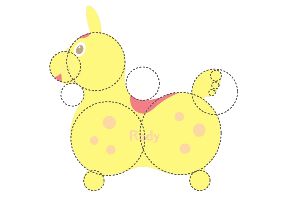馬をモチーフにバランスボールテクノロジーを応用して作られたロディは全身が丸いフォルムの集合体です。