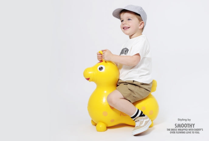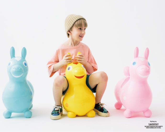 馬をモチーフに、バランスボールテクノロジーを応用して作られた乗用玩具です。