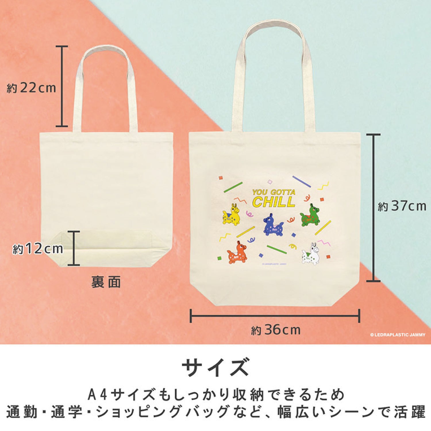 A4サイズもしっかり収納できるため、 通勤・通学・ショッピングバッグなど幅広いシーンで活躍。