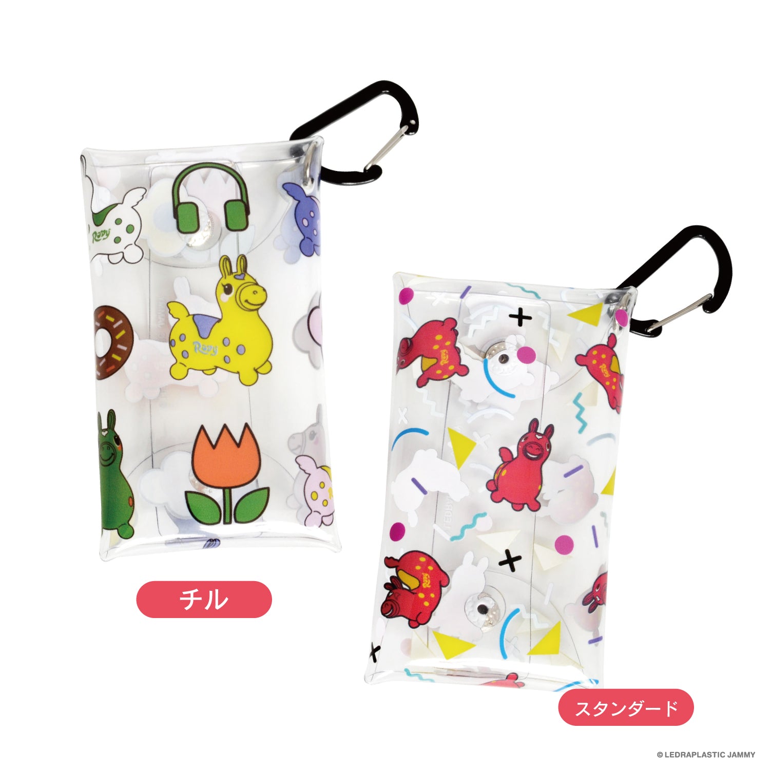 透明感のあるクリア仕様に加え、 カラビナ付きなのでバッグやベルトループに簡単に取り付けできます。