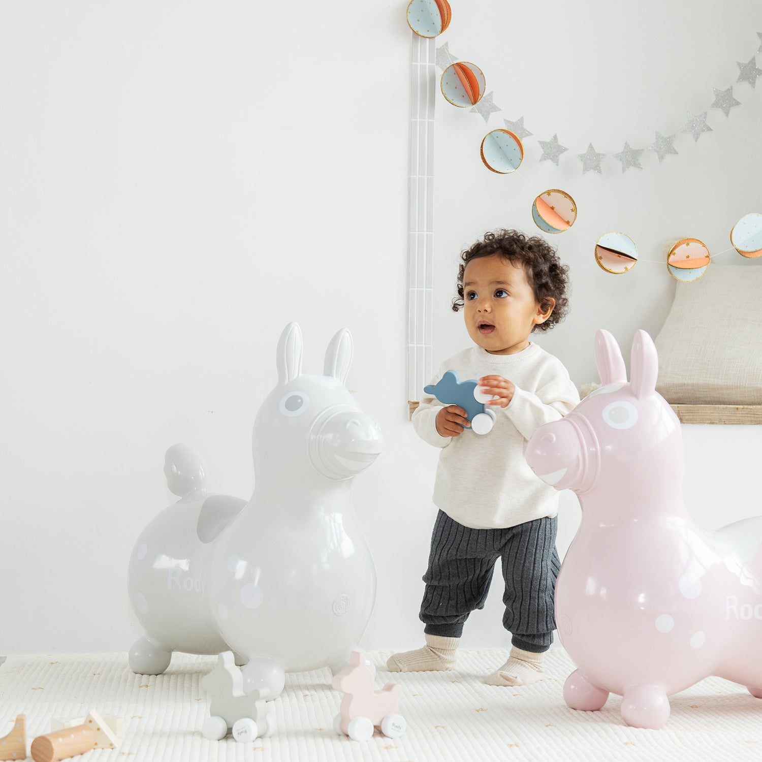 子供の遊び道具としてだけではなく、インテリアとしてもスッキリとスタイリッシュにRodyを使いたいママやパパにもピッタリな、洗練されたカラーが特徴的。