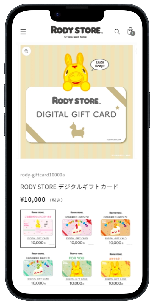 RODY STORE(ロディストア)デジタルギフトカード購入ページ より、金額とデザインを選び購入します。