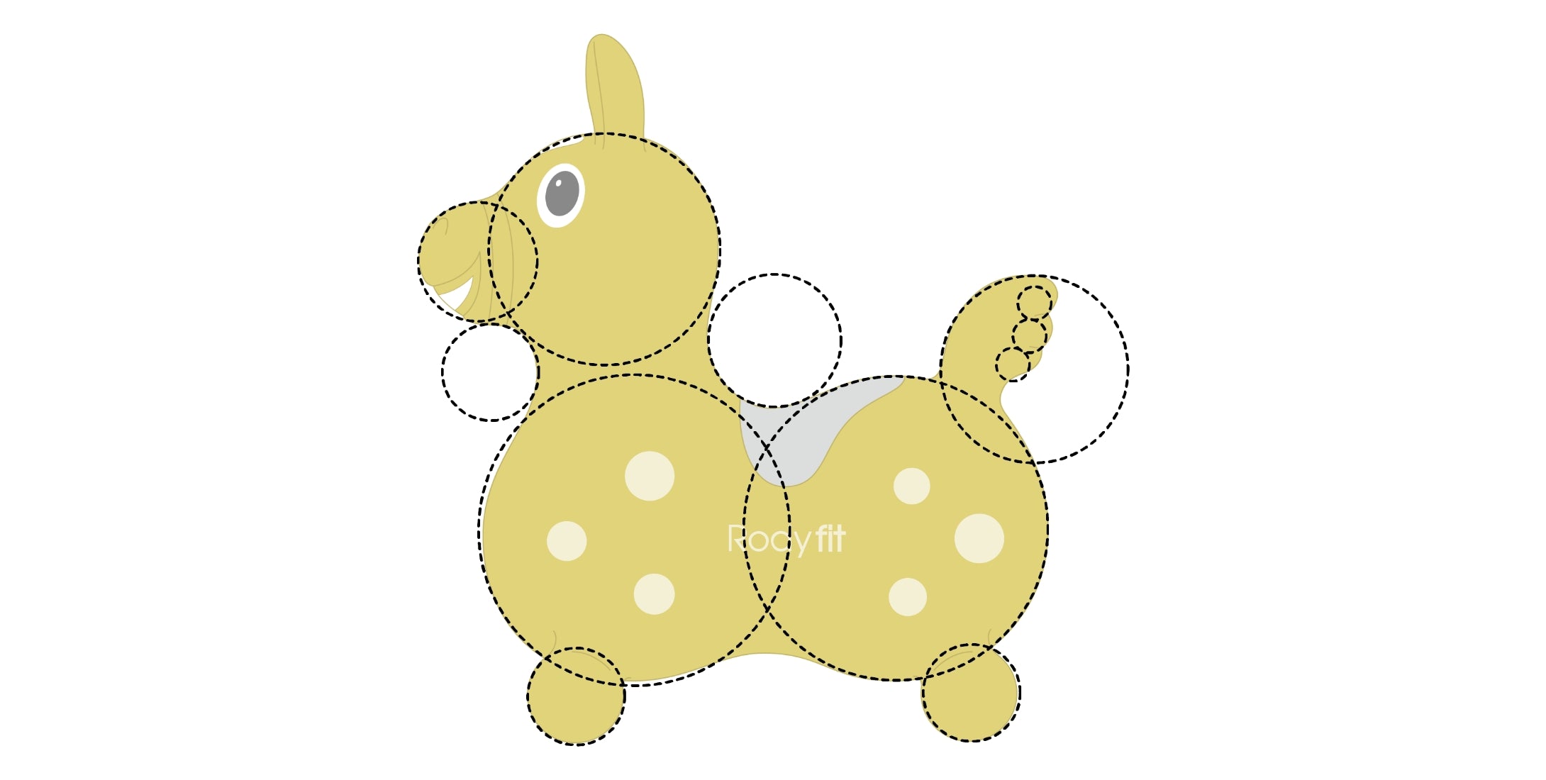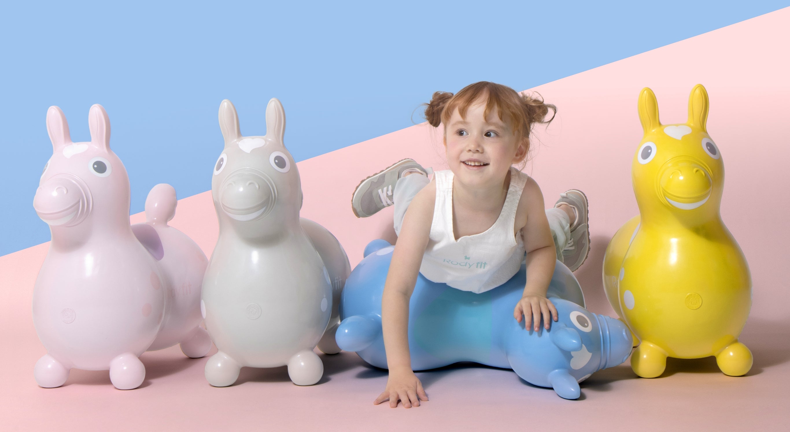 馬をモチーフにバランスボールテクノロジーを応用して作られたロディは全身が丸いフォルムの集合体です。